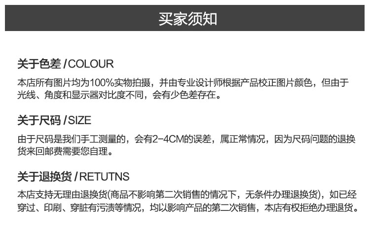 定制類服裝提供修改尺寸服務(wù)。