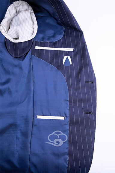設(shè)計(jì)理念:這款精致條紋套裝,穩(wěn)重大氣是此款西服的主要風(fēng)格。厚重的面料質(zhì)地更適合秋冬穿著。本款西服面料精選自SCABAL面料,其面料特點(diǎn)明暗線條變化,冷而不僵,雅而不悶。此款精致條紋套裝,采用手工半麻襯工藝,彰顯身份。帶蓋口袋,戧駁頭,手工扣眼,經(jīng)典單排兩??墼O(shè)計(jì),后開衩修飾后背身型。內(nèi)右側(cè)防輻射襯里手機(jī)袋(防護(hù)口袋)、筆兜、名片兜,內(nèi)左側(cè)雙嵌線小口袋。